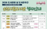 순천 이유빈 기자2026. 04.07[뉴스앤저널] 순천시는 오는 12일부터 18일까지 ‘도서관의 날’ 및 ‘도서관 주간’을 맞아 순천시 8개 도서관에서 강연, 체험, 전시 등 독서문화행사를 운영한다고 밝혔다. 이번 도서관주간은 ‘도서관 속 작은 펼침, 세상을 여는 큰 열림’을 주제로 진행된다. 도서관주간을 맞이해 12일 어울림도서관에서 웹툰 '정년이' 서이레 작가와의 만남이 진행되며, 15일과 16일 삼산도서관에서는 윤송현 작가의 ‘도서관은 어떻게 세상을 바꾸는가’, 우석훈 박사의 ‘경제학자가 진단한 도서관의 가치와 존재 이유’ 특강이 각각 열려 도서관의 사회적 ...