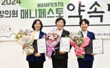 장흥 온라인뉴스팀2024. 12.27[뉴스앤저널]광주광역시의회 명진, 이귀순, 신수정 의원이 “2024년 지방의원 매니페스토 약속대상” 좋은 조례 분야 수상자로 선정됐다. (사)한국매니페스토실천본부는 12월 27일 오후 2시 서울 영등포아트홀에서 ‘좋은조례분야’ 최우수상에 명진 의원을 우수상에 이귀순, 신수정 의원을 시상했다. 명진 의원(더불어민주당, 서구2)은 ‘광주광역시 가족돌봄청소년·청년 지원 조례”를 통해 돌봄 청소년에 대한 가정과 사회의 책임수행에 필요한 여건을 조성하고 특히 청년정책을 수립할 때 취약계층에 대한 별도의 지원 근거를 마련한 점과 돌봄 가족...