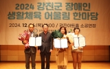 강진 온라인뉴스팀2024. 12.27[뉴스앤저널]강진군이 26일 강진아트홀 소공연장에서 2024년 장애인 생활체육 어울림 한마당을 개최했다. 이번 행사는 한 해 동안 장애인 생활체육 활동의 성과를 공유하고, 참여자 간의 화합을 도모하기 위해 마련됐다. 이날 행사는 강진원 강진군수, 서순선 강진군의회 의장을 비롯해 장애인체육회 임원, 장애유형단체 및 장애인 체육인 등 200여 명이 참석해 성황을 이뤘다. 올해 강진군은 전년보다 더 많은 예산을 투입해 장애인 체육 발전에 힘썼다. 이에 따라 제32회 전라남도장애인체육대회에서 군 단위 4위, 종합 9위를 차지했다...