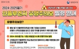 영광 온라인뉴스팀2024. 12.24[뉴스앤저널]신안군은 질병관리청에서 지난 12월 20일 인플루엔자(독감) 유행주의보를 발령함에 따라 미접종자는 신속한 인플루엔자 예방접종이 필요하다고 강조했다. 최근 유행 중인 A형 인플루엔자 바이러스는 이번 절기 백신 주사와 매우 유사하므로 백신 접종으로 충분한 예방효과를 기대할 수 있다. 군에서는 무료로 생후 6개월부터 13세 이하 어린이, 임신부, 65세 이상(1959년 12월 31일 이전 출생자), 취약계층 대상 인플루엔자(독감) 접종을 지원하고 있으며, 14세~64세 대상자 유료(11,000원) 접종도 시행 중이다. ...