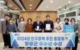 영광 온라인뉴스팀2024. 12.24[뉴스앤저널]영광군은 2024년 전라남도 인구정책 추진 종합평가에서 우수상을 수상하며 2022년과 2023년에 이어 3년 연속 수상의 영예를 안았다. 이번 평가는 전라남도가 주관하여 인구 문제 극복을 위한 노력도, 정책 개선 및 추진 성과, 우수 사례 등을 종합적으로 심사한 결과로, 영광군은 체계적이고 선도적인 인구정책 추진 성과를 인정받았다. 특히 군의 다양한 인구정책 중 ‘영광형 선진 청년마을 조성’과 ‘영광청년육아나눔터 조성’이 지역의 인구 문제를 적극적으로 해결하기 위한 실질적이고 효과적인 사례로 높은 평가를 받았다....