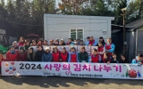 함평 온라인뉴스팀2024. 12.19[뉴스앤저널]영암군자원봉사센터와 영암군여성자원봉사협의회가 12일 지역사회 14개 단체 200여 명이 참여하는 ‘사랑의 김치 나누기’ 행사를 열고, 여기서 담근 김치 600박스를 취약계층 가정에 전달했다. 지역사회 연대로 이뤄진 이날 행사에는 특히, 해군 제3함대사령부 3수리창 무기체계공장 천사봉사단이 함께 해 그 의미를 더했다. 김채남 영암군자원봉사센터장은 “겨울철 형편이 어려운 이웃을 위해 나서준 지역사회 14개 단체 구성원들에게 감사드린다. 앞으로도 다양한 봉사활동의 장에 지역사회가 함께 나설 수 있도록 연결하고 조직하겠...