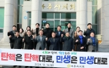 함평 온라인뉴스팀2024. 12.16[뉴스앤저널]나주시의회는 12월16일, 제265회 나주시의회 제2차 정례회회기 중, ‘탄핵은 탄핵대로 민생은 민생대로’ 성명서를 발표했다. 지난 14일, 윤 대통령 탄핵안이 재적의원 300명중 300명이 참석한 가운데 찬성 204표, 반대표 85표, 기권 3표, 무효 8표로 가결됐다. 이에 나주시의회는 “탄핵은 탄핵대로 진행이 되겠지만, 그와 별개로 나주시 민생을 최우선 가치로 삼아 시민 여러분의 삶을 보살피고 경제를 회복하는 데 집중하겠다.”라며 성명서를 발표하게 된 이유를 설명했다. 이재남 의장은 “불안한 정국으로 서민과 ...