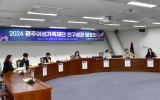 광양 온라인뉴스팀2024. 12.13[뉴스앤저널]광주광역시의회 임미란 의원(더불어민주당, 남구2)은 13일 시의회 5층 예산결산특별위원회실에서 ‘시민과 함께하는 2024년 광주여성가족재단 연구성과 공유발표회’를 성황리에 개최했다. 이번 발표회는 광주광역시의회와 광주여성가족재단 공동 주최로, 첫 번째 세션은 임미란 의원이 좌장을 맡았고, 두 번째 세션은 전명숙 전남대학교 경영학부 교수가 맡았다. 2024년 광주여성가족재단 연구과제 중 4개의 핵심 연구 결과를 선정해 현장 중심 정책 방안과 시책 사업을 관계기관 및 시민과 공유하기 위해 마련됐다. 첫 번째 세션 발제...