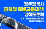 [뉴스앤저널]광주광역시의회 박필순 의원(더불어민주당‧광산구3)은 16일 오후2시 광주시의회 4층 대회의실에서 ‘광천권 특별교통대책, 이대로 괜찮은가?’를 주제로 정책토론회를 개최한다. 이번 토론회는 광주시의 ‘광천권 특별교통대책’ 세부 내용을 점검하고, 실효성과 예산 확보 방안 등에 대한 심도 있는 논의를 위해 마련됐다. 토론회에는 먼저 광주시 이창호 교통정책연구실장이 ‘광천권 특별교통대책’ 설명으로 발제에 나선다. 이어 오성훈 건축공간연구원 선임연구위원, 박용남 지속가능도시연구센터 소장, 최동호 광주대 교수, 엄지연 EOD...