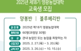 영광 온라인뉴스팀2025. 03.04[뉴스앤저널] 영광군은 합리적인 농장경영 및 과학영농 실천능력을 갖춘전문농업경영인을 양성하기 위하여 '제18기 영광농업대학(양봉반, 블루베리반)' 신입생을 3월 20일까지 모집한다고 밝혔다. 올해 추진하는 영광농업대학은 3월 입학을 시작으로 10월까지 주 1회, 4시간씩 진행하며 총 20회 79시간으로 운영된다. 농번기에는 과정별로 방학을 1회(4~8월) 실시하여 탄력적인 운영으로 수강생에게 편의를 제공한다. 또한 올해는 양봉반, 블루베리반 두 과정으로 운영되며, 계절별 사양관리·블루베리 재배생리·병해충 관리법 등의 이...