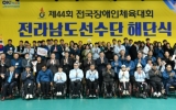 전라남도 온라인뉴스팀2024. 11.26[뉴스앤저널]전라남도장애인체육회는 제44회 전국장애인체육대회에서 활약한 전남선수단의 해단식을 26일 전남체육회관에서 개최했다. 지난 10월 경남 일원에서 열린 장애인체육대회에서 전남선수단은 31개 전종목에 700명(선수 435명·임원 265명)이 출전, 금메달 50개, 은메달 55개, 동메달 75개로, 역대 원정 최다 금메달 획득과 최고 득점(10만 5천663점)을 달성해 종합 9위를 차지했다. 해단식에는 명창환 전남도 행정부지사, 전남도의회 이광일 부의장, 윤명희 경제관광문화위원장, 나광국 예산결산특별위원장, 박정현 장애인체육...