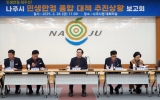 전라남도 온라인뉴스팀2025. 03.03[뉴스앤저널]전라남도 나주시가 고물가, 고금리, 고유가로 침체에 빠진 민생경제 회복을 위한 종합대책 추진 현황을 점검하고 올 상반기까지 신속한 완료를 목표로 행정력을 집중하기로 했다. 나주시는 지난달 28일 시청사 대회의실에서 윤병태 시장 주재로 2025년 민생안정 종합대책 추진상황 보고회를 가졌다고 1일 밝혔다. 민생안정 종합대책은 지난해 연말 국정 혼란과 내수경기 침체, 소비심리 위축으로 어려움을 겪는 소상공인, 자영업자의 경영 안정과 생계유지를 위해 190억원 규모 4대 분야 35개 세부 사업으로 구성했다. 여기에...